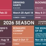 For over fifty years, thousands of audience members have created memories at the Coaster Theatre Playhouse and hundreds of volunteer actors have graced our stage. As we look forward to our 54th season we are excited to announce what our volunteers and audiences can look expect at the theatre next year. Our six show, 2026 season will start off with a searing portrait of an artist’s ambition and vulnerability in Red; wine and secrets are spilled in the laugh-out-loud farce Drinking Habits; in May we dance backwards through time to retrace a love story in Bloomsday. Summer brings Sherlock Holmes and Dr. Watson back to the theatre in Ken Ludwig’s Moriarty; fall brings love, friendship and theatrical drama with Romantic Comedy, and we end the season with a trip over the rainbow with The Wizard of Oz
