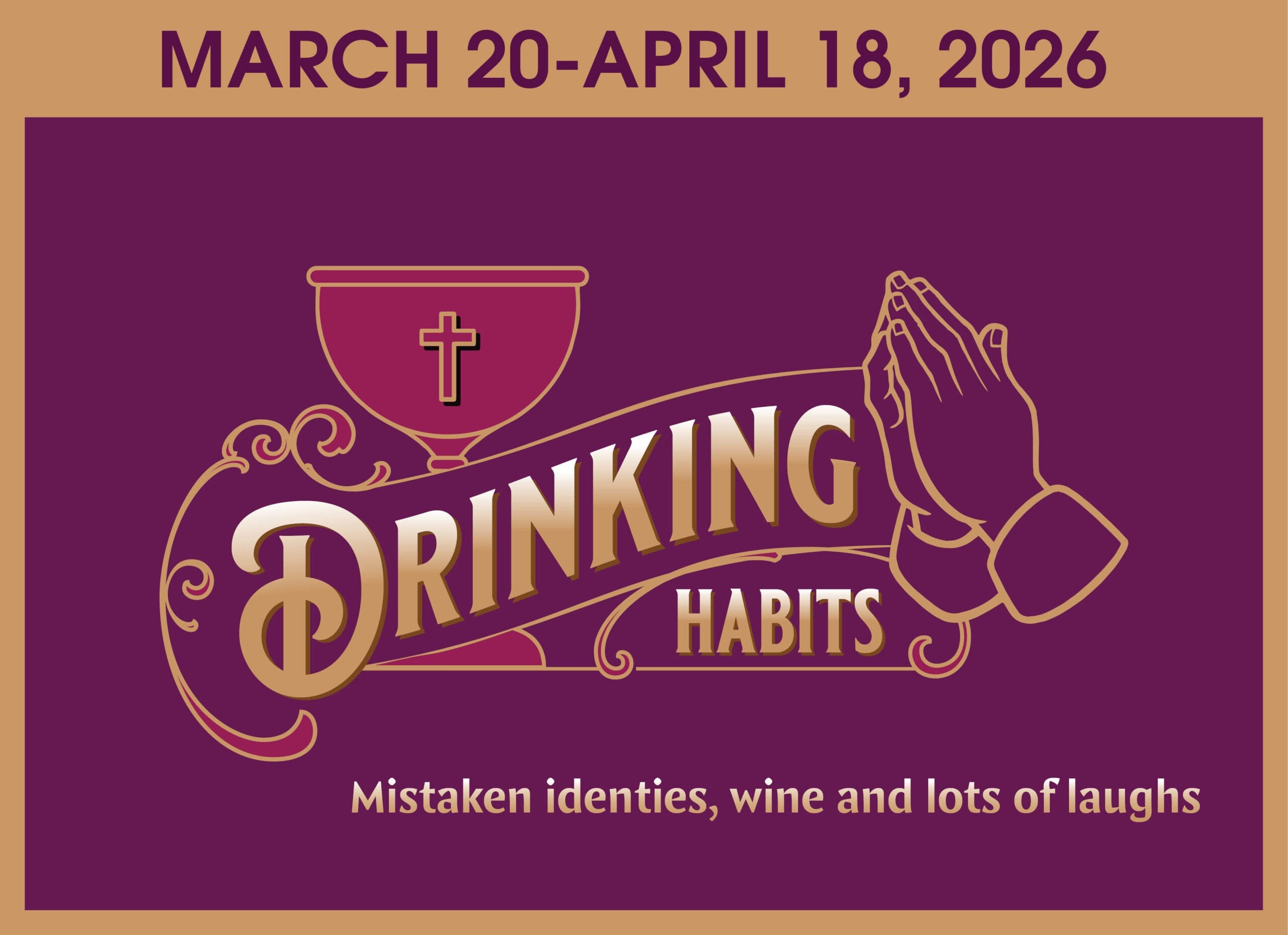 Mistaken identities, accusations, and romances run wild in this laugh-out-loud farce. Two nuns at the Sisters of Perpetual Sewing have been making and selling wine in secret to keep the convent’s doors open, but Paul and Sally, reporters and former fiancees, are hot on their trail. They go undercover as a nun and priest, but their presence, combined with the addition of a new nun, spurs paranoia throughout the convent that spies have been sent from Rome to shut them down. Wine and secrets are inevitably spilled as everyone tries to preserve the convent and reconnect with lost loves.